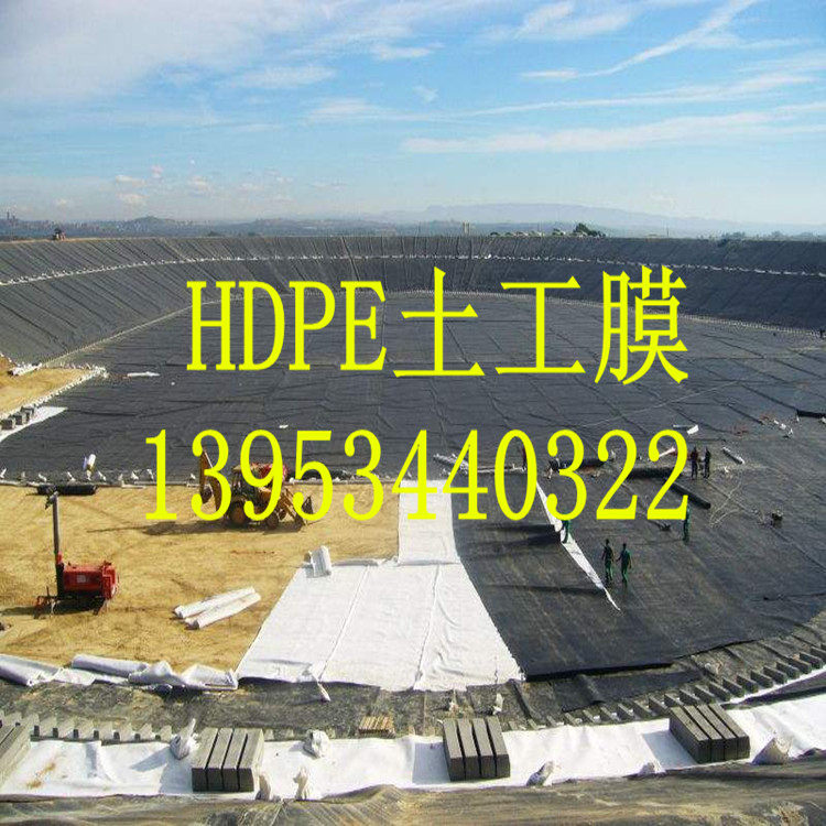 土工膜(英文名:Geomembrane)是以高密度聚乙烯树脂为原料,经过高温熔化、挤压、压延成一种防水阻隔型材料。土工膜的颜色分白色、黑色、蓝色、绿色等。宽幅:1-8米。膜厚:0.30-2.00毫米。制造工艺分为:吹膜、流延膜。此材料具有优良的耐环境应力开裂性能,抗低温、抗老化、耐腐蚀性能,广泛使用在生活垃圾填埋场防渗,固废填埋防渗,污水处理厂防渗,人工湖防渗,尾矿处理等防渗工程。