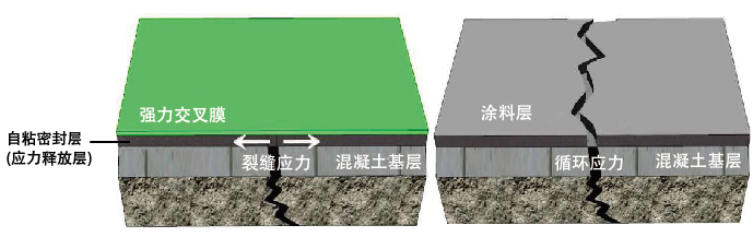 8、与混凝土密封层不窜水、不透水、交叉叠压强力膜的拉伸和抗撕裂等性能好