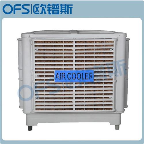 冷风机(蒸发式冷气机)降温原理是:当风机运行时进入腔内产生负压,使机外空气流过多孔湿润的湿帘表面迫使过帘空气的干球温度降至接近于机外空气的湿球温度,即冷风机出口的干球温度比室外干球温度低5-12℃(干热地区可达15℃),空气愈干热,其温差愈大,降温效果越好。由于空气始终是从室外引进室内,(这时候叫正压系统)所以能保持室内空气的新鲜;同时由于该机利用蒸发降温原理,因此具有降温和增湿的双重功能(相对湿度可达75%左右),在纺织、针织等车间使用,不但能改善降温增湿条件,而且还能净化空气,减少针纺过程中的针断丝率,提高针纺织产品的质量。 冷风机(蒸发式冷气机)的四周装有使用特种材料的蜂窝状湿帘,具有很大的表面积,通过水循环系统对湿帘不断增湿;在湿帘冷风机内装有高1效低噪节能风机,当风机运行时,湿帘冷风机的产生负压,使机外空气流经多孔湿润的湿帘进入机内,由于湿帘上水的蒸发吸收热量,迫使统经湿
