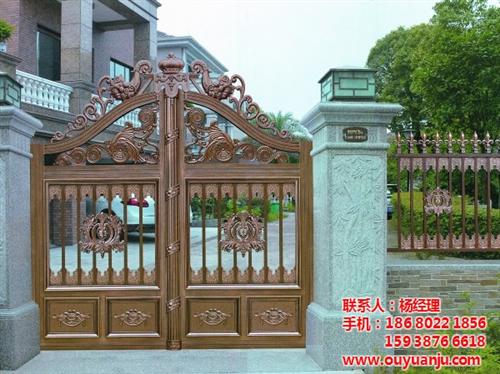 欧园居门业是一家专业以生产别墅铸铝庭院门、销售铜门、艺术门为一体的生产厂家,生产多款铝艺大门,适用于不同风格的别墅,造型美观,不会生锈。
