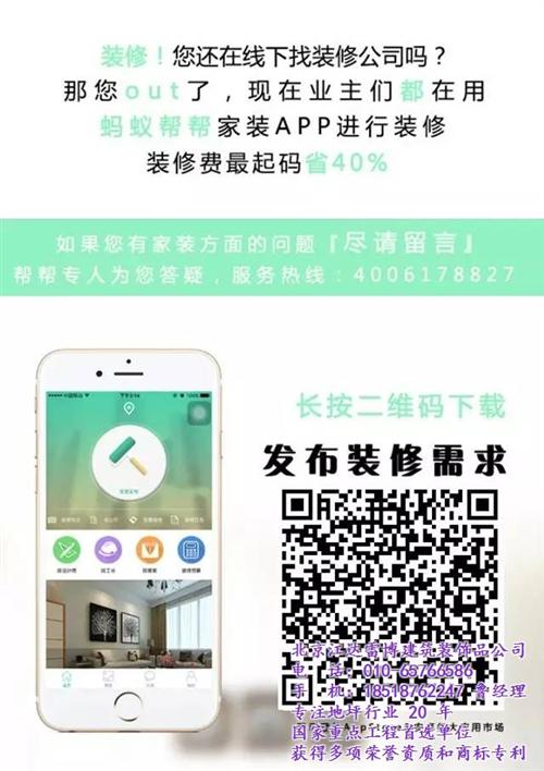 谁说装修时不能自己做主?谁说装修一次就会丢掉半条命?蚂蚁帮帮装修行业的新突破,您只需动一动手指,下载蚂蚁帮帮APP,操作手里的APP,它就能一站式为您配备设计师,工长,装修管家解决所有装修中需要解决的问题,没错!你没看错!它就是如此的好!不可思议! 下载“蚂蚁帮帮”app