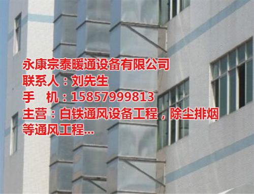 金华永康宗泰通风设备有限公司承接各类白铁通风工程,除尘排烟工程,暖通设备工程,厨房排油烟工程,厂房通风降温工程,白铁片加工,厨房酒店消防排烟工程等,主要服务区域在金华,永康,东阳,丽水,义务,台州,芜湖等周边城市。