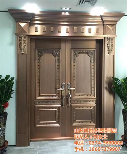 不锈钢门就是用不锈钢钢板材料加工而成的门,和普通的门外观一样,主要材料是不锈钢板材,里面的填充物一般是泡沫或者是蜂窝纸制成的,优点能起到门作用,还可以采用模具制作各种不同的门花件。不锈钢门由不锈钢和耐酸钢两大部分组成的,外表高贵大方,设计新颖,提升建筑物的品质。不锈钢门具有有极强的防腐性能且独具不锈钢的光泽,质地坚硬,较好的物理性能,主要用于防腐蚀要求高的部位或装饰要求高的场所。