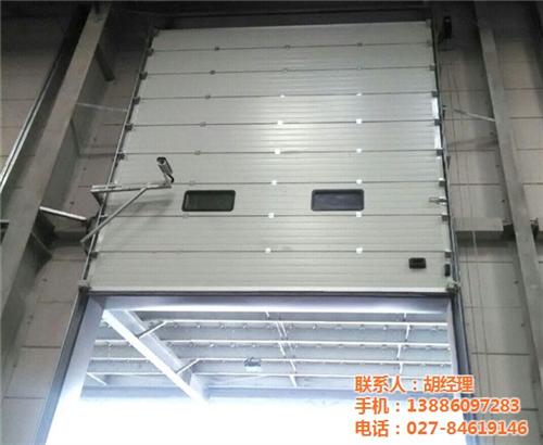 提升门门板采用0.3-0.5彩钢内填充40mm/50mm/75mm厚度聚氨酯,门板具备防夹手、防雨水特性,门板具有隔热、隔音、保温等优点