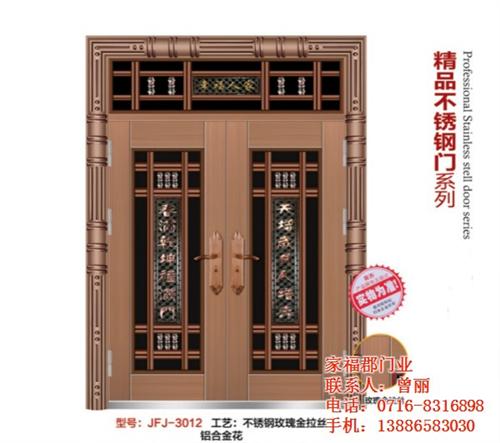 不锈钢门由于其色泽鲜艳、高贵雅致、易于和周围环境搭配以及款式更加符合审美观,并且具有永bu生锈、质地坚硬等诸多优点,使不锈钢门产品深受消费者的喜爱。不锈钢门在不断的改革创新,通过在原材料上的加工精炼到表面制作工艺上美工创新,使得不锈钢门产品焕然一新,不但外观精美、风格新颖、具有很高的视觉效果,同时款式多样,更重要的是牢固耐用,得到国际防盗标准,是人们入户家居装饰中的shou选门产品。不锈钢门在时代的强烈洗礼下,这一行业将逐渐地由技术密集型向知识、科技、艺术型方向发展,其最终的宗旨是为了满足人们日常生活的需求,从而提高人们的生活水平。