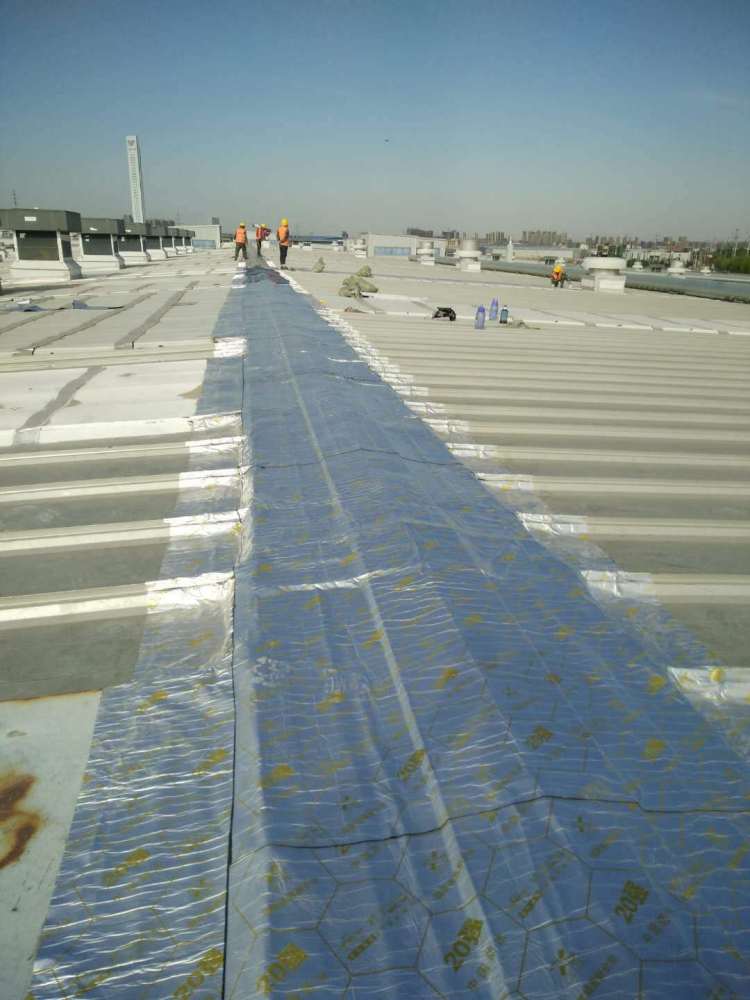 3、不宜在冰冻、露水、大雾天气施工,基层潮气会产生鼓包,施工时材料与屋面必须顺延、贴平、压实,以便排除空气,否则会出现人为踩时易破现象,直接影响使用寿命;
