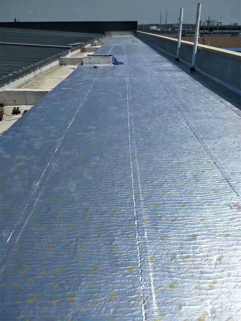 采用特殊的化学共混改性沥青为基料,防水卷材,提高自粘卷材的粘结性能和耐高温性能。高温指标达100℃,粘结强度较普通自粘卷材提高80%。并以金属铝箔为覆面,提高了隔热、抗老化、防水一体化,大大延长彩钢瓦的使用寿命和彩钢屋面防水难题。