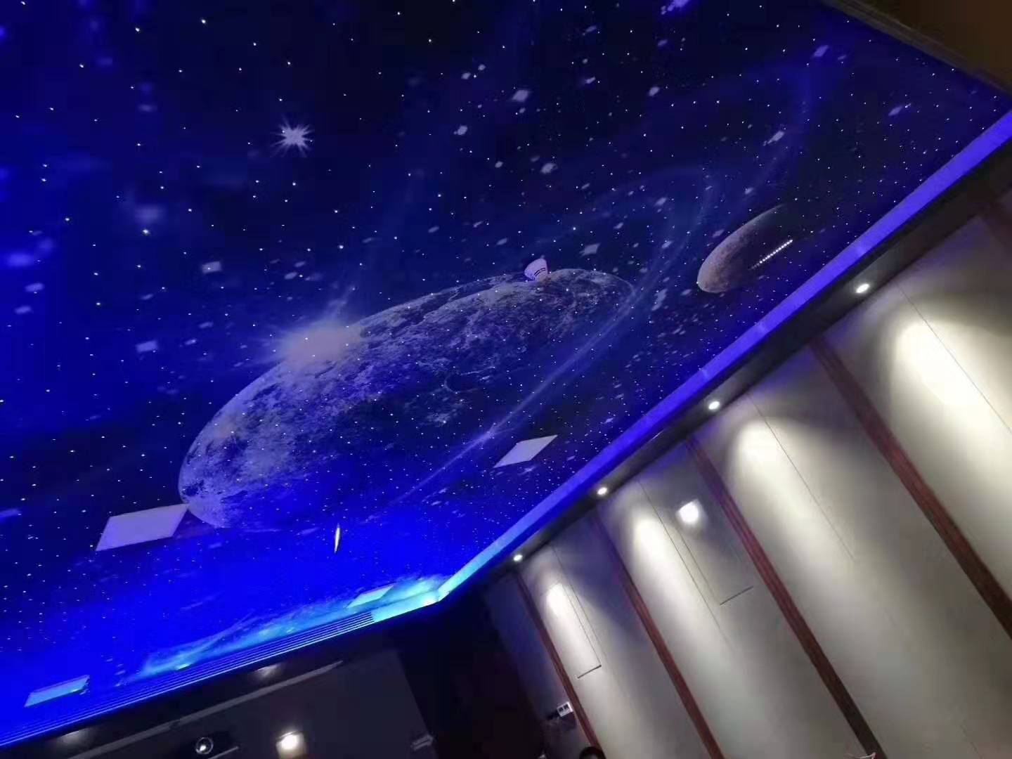 光纤满天星可制作成多彩多式的星空图案,形成一种色彩变幻、高贵典雅、华美浪漫的高雅气氛。光纤水帘色彩变化丰富,似瀑布流水。