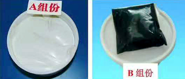A组分是液体橡胶为主剂,加入增强剂、增塑剂、触变剂及其它功能助剂制成,通常为白色膏状物;B组分以金属氧化物为主剂,加入专用固化加速剂、填料、增塑剂等制成,通常为黑色或灰色膏体。