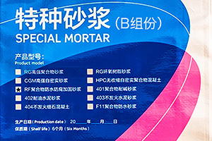 RF聚合物防水防腐砂浆甲组分采用塑料桶包装,20kg/桶,乙组分采用珠光膜复合编织袋包装,50kg/袋。