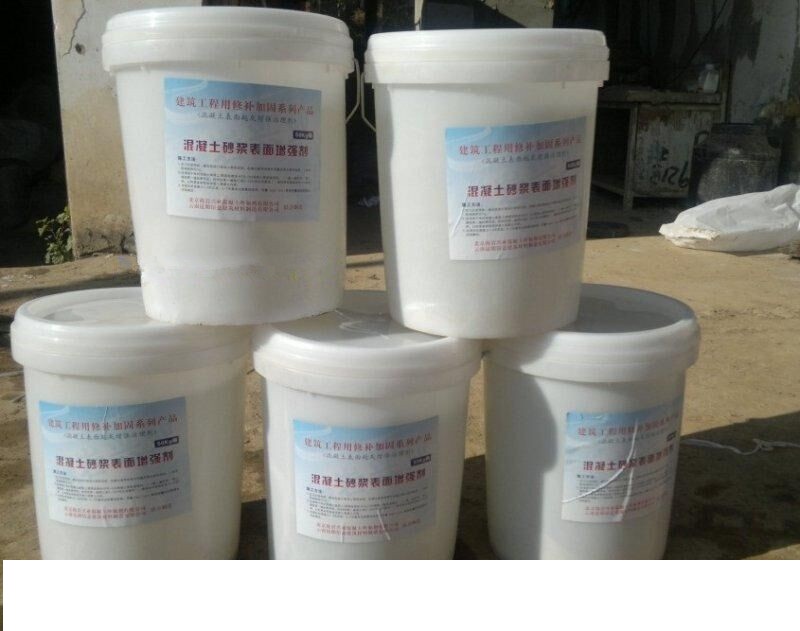 南浆混凝土表面增强剂具有极低的表面张力,能快速渗透至混凝土内部,与混凝土中水泥水化的副产物如氢氧化钙发生二次反应,生成大量的二氧化硅凝胶,这些凝胶能堵塞混凝土内部毛细微孔,从而增加混凝土表面的密实性、抗压强度、硬度和耐磨性,一般能提高混凝土强度的15-30%。某些双组份的混凝土表面增强剂与混凝土中相关成份的化学反应更为复杂,除了生成二氧化硅凝胶,还会生成一些致硬、致密的物质,使混凝土的强度增加更为明显,双组份的水泥地面起砂处理剂即属于这类材料,它能将表面强度差、起灰起砂的水泥混凝土地面硬化至完全不起砂、不起灰。