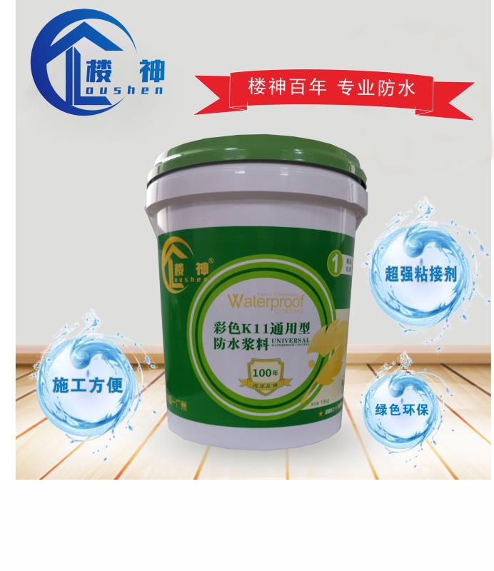 楼神蓝色K11通用型防水涂料是一种由独特配方调制而成的聚合物改性水泥基防水材料。它是双组分的刚柔性防水浆料,按配合比把粉料与添加剂混合均匀后得到的浆料,涂刷在所需的部位,能够渗透到底材内部形成枝蔓状结晶体,隔断结构内的水分子通道,从而起到防水效果。