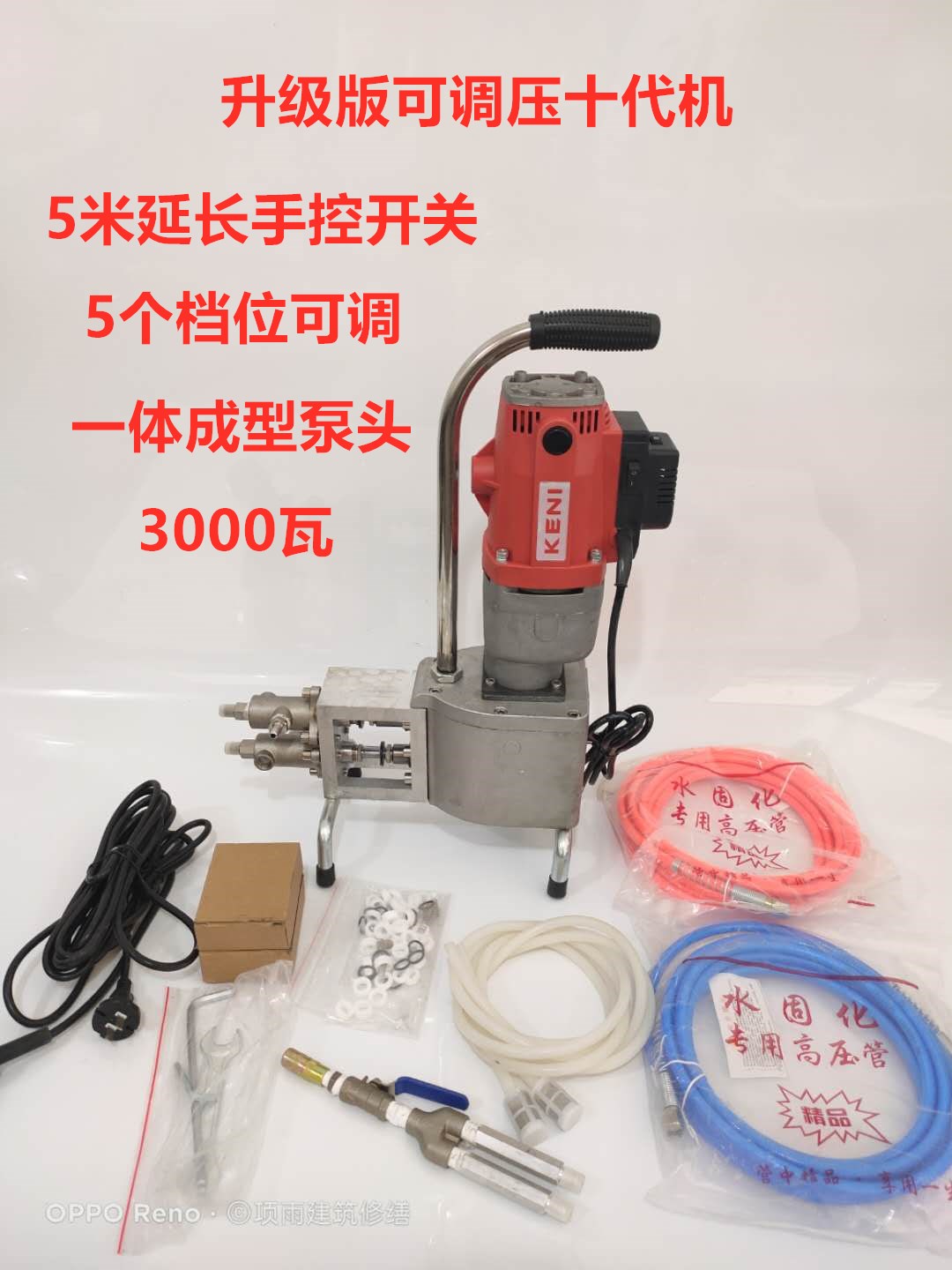 双液灌浆机是一款新型的高压注浆设备。该产品内外部以特殊坚韧耐磨材料打造,使其坚实耐用,并排除传统设备压力不足、内部容易堵塞、腐蚀性差等缺点。 其机身分别带两个特制的进水阀与出水阀,用于吸进与排出材料。该产品的材料是以水为分散介质的高分子聚合物.本材料溶于水后不会增加水的粘度,在注浆设备压力的推动下,能快速渗入所有水能渗透的缝隙,瞬间发生固化反应。形成一种耐酸碱;耐腐蚀,高柔韧性的100%不透水胶体。将地下的混泥土紧密胶联在一起,进一步填充了所有渗漏缝隙,从而达到堵漏治渗的目的。
