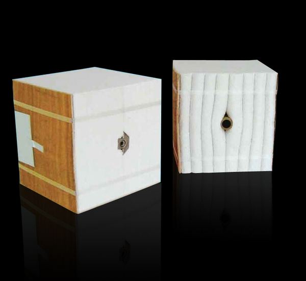 陶瓷纤维毯折叠模块是采用陶瓷纤维毯,按一定的宽度折叠成手风琴状,然后将折叠块加以一定量的预压缩,并在压缩状态下捆包起来,最后预埋装锚固件折叠压缩而成。模块纤维不含任何结合剂。折叠毯在解除捆扎后会在不同的方向上相互挤紧,不产生缝隙。