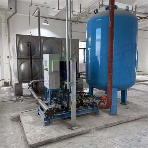 2. 自动补水:当系统水温下降或发生泄漏导致压力降低时,罐内气体膨胀将水压回系统,同时装置自动启动补水泵向系统注水,恢复设定压力。