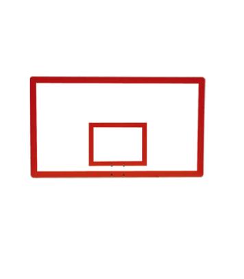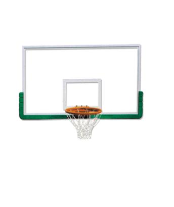 篮板配用国际通用的高强度安全玻璃篮板后12mm铝合金包边,具有透明度高、耐侯性好、抗老化、耐腐蚀、不易模糊等特点,并在篮板下沿侧面覆盖有保护圈,保护圈前后表面高度、厚度均≥20㎜,底面厚度≥50㎜,符合FIBA规则,能有效保护运动员扣篮时不受伤害。