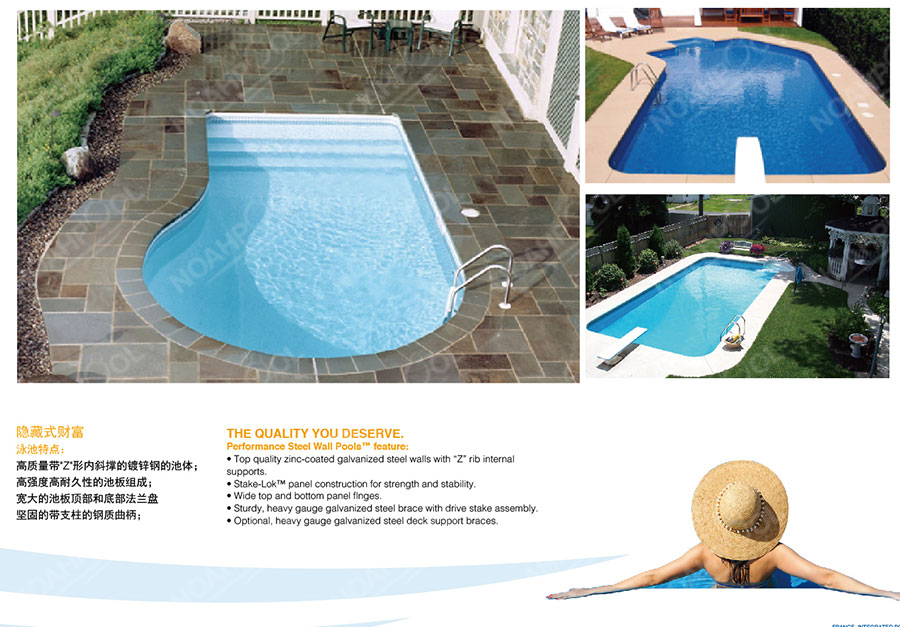 北京诺亚天动力技术有限公司专业从事装配式泳池的生产和安装服务,旗下有专业的泳池品牌-诺亚泳池(noahpool)。装配式游泳池是一种钢结构游泳池,是诺亚泳池基于欧美50年成熟的泳池技术,应用最新的装配式概念和自主专利自平衡技术打造的全新的游泳池系统,实现了“任何地方、任何大小、任何水深”的游泳池建造。产品适用于室内、室外、地上、地下等各种环境,可以根据用户场地制作各种异形游泳池,水深最大可达2米以上,让同类产品难以企及。诺亚泳池的装配式游泳池系统,设计科学,结构合理,无需平台支撑,池体轻薄,非常适用于狭窄环境下的游泳池建造。