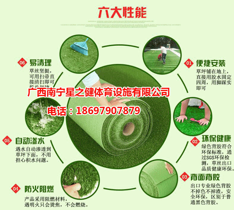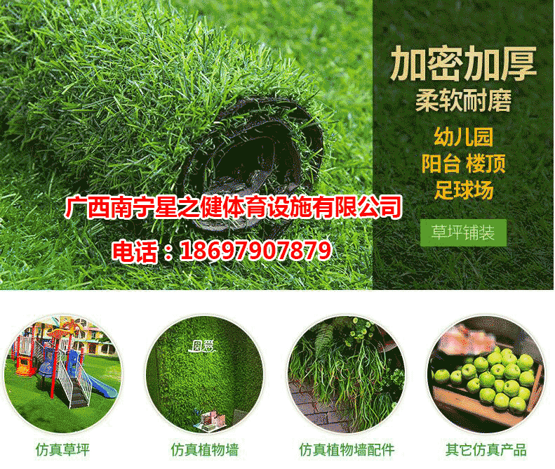 人工草坪产品说明:草坪采用优质草丝,添加抗老化剂、抗UV剂,并运用国际先进的技术精制而成,具有与天然草相似的外观与性能,具有弹性好,重压后的恢复性佳。