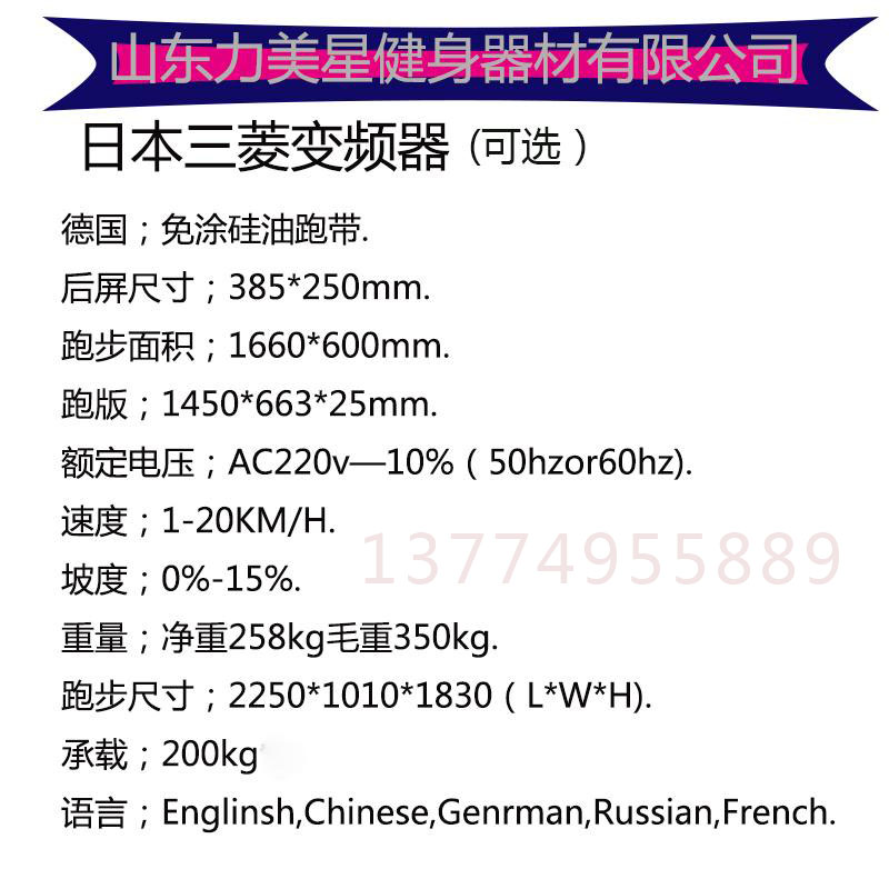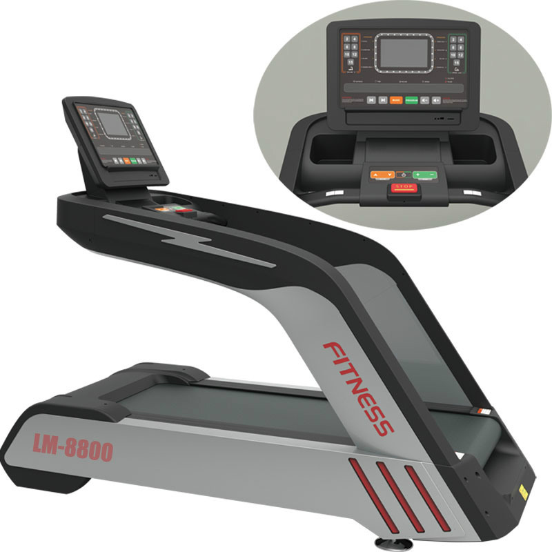 跑步机的配置:lm-8800型电动跑步机是严格按照国家行业标准及国际先进理念实施设计、开发和制造的一款家用豪华型的豪华电动跑步机,特点;跑板则采用了独有的双重减震系统,最上层的脲醛树脂板面具有光洁度高,超强耐磨的特点;采用低噪音交流马达,,以满足不同消费者的需求。此外,LM-8800多功能豪华家用电动跑步机还具有如下特点: ◆ 马达: 采用低噪音直流马达 ◆ 输入电压:210V~230V(50/60Hz) ◆ 速度范围:1-20km/h ◆ 具有手把调速功能和手握心率测试功能 ◆ 具有手把坡度调节功能 采用进口专用跑步带 ◆ 采用高强度、高密度、高弹性超耐磨跑板 ◆ 采用橡胶减震及优质硅胶减震柱避震缓冲系统,使得运动更加舒适流畅 ◆ 具有过流、短路保护功能 ◆ 内置U盘 ◆ 支持各种音频转换输入及内置高保真音响令您在愉悦的环境中开始一天的健身计划 ◆ 时尚新颖的智能电容式触摸屏设计使整机更具活力 LM-8800型多功能豪华家用电动跑步机整体造型时尚、柔美、典雅、大气,非常适合现代化的装修风格,是您家庭健身及办公减压好的选择