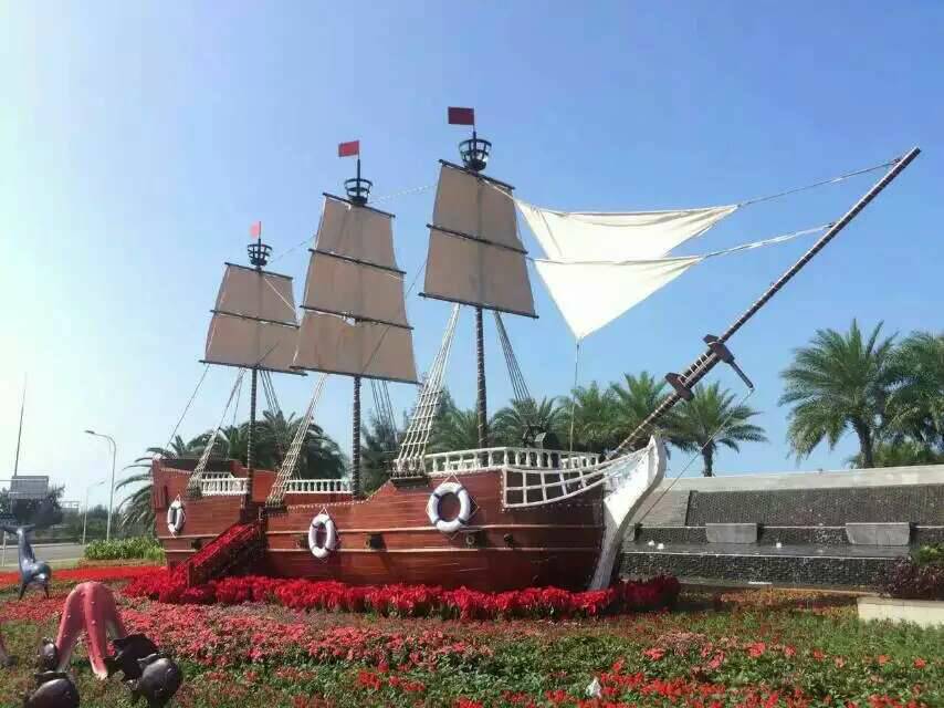 深圳市振兴设施制造厂景观船|西班牙海盗船的塑胶件:采用全食品级进口工程塑料.色泽鲜艳,手感舒适,安全环保。颜色可根据客户需要订制。景观船适用范围:园林景观、小区庭院、社区儿童游乐、商务广场、会所建筑物标志等。