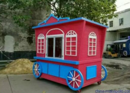 深圳市振兴景观设施制造厂 专门为客户设计许多非常好的富有创意的商亭、售卖亭、售货亭,这些售货亭和售货花车都以独特的展示方式售货的同时,也以它独特的造型传达着艺术的美感并以它独特的方式丰富着城市景观,美化着人们的生活。“移动式售货模式,(联系:13570845306 蓝女士)流动在身边的时尚品味”!