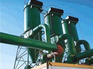 CLK扩散式旋风除尘器筒身呈倒圆锥形,因而减少了含尘气体自筒身中心短路到出口去的可能性,并装有圆锥形的反射屏,防止两次气流将已经分离下来的粉尘重新卷起,被上升气流带出,它具有除尘效率高,结构简单,加工制造容易,投资低和压力损失适中等优点。