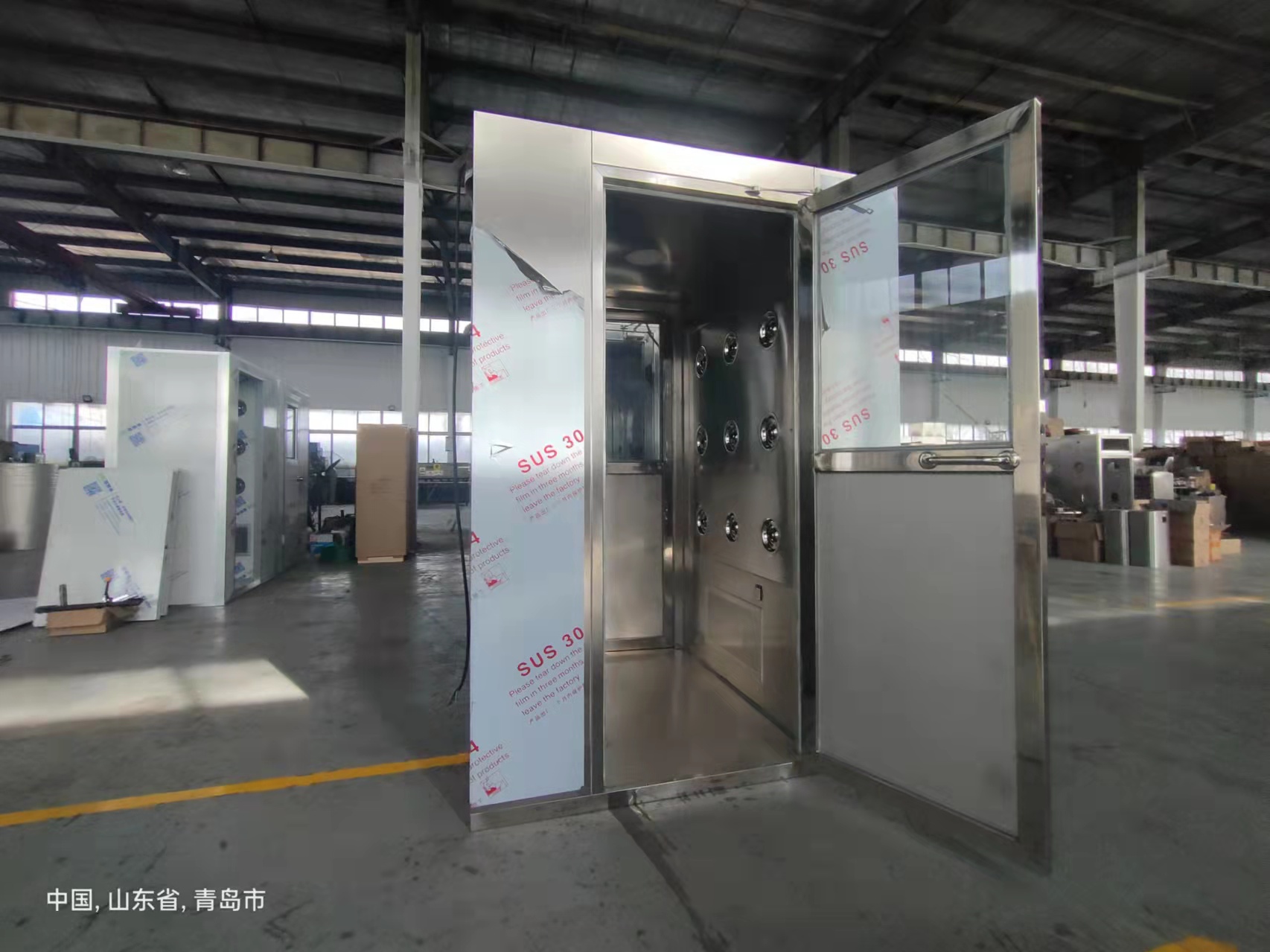 ,工作人员进入车间时,必须通过此设备,用强劲洁净的空气,由可旋转喷嘴从各个方向喷射至人身上,