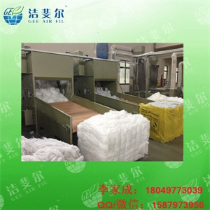12、别名:初效过滤棉是经开松、混合、梳理均匀成网再经热熔、冷却成型,成片或卷装。然后经后整理(如上胶,与布(网)贴合等),最后烘干定型制成的空气过滤棉,也叫热风棉。