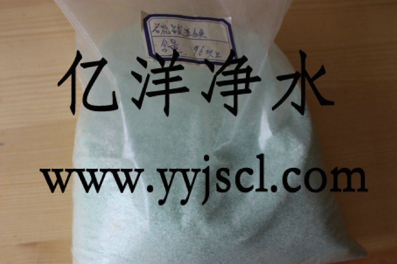 硫酸亚铁分子式为FeSO4.7H2O,是硫酸法生产一种稀有金属产品过程中产出的副产品,产品外观为淡绿色或淡黄绿色结晶固体。加入议定用量可调节碱性水中的PH值,与水中悬浮物有机结合,并加速沉淀,主要应用于水质净化和工业废水处理,同时具有杀菌作用。