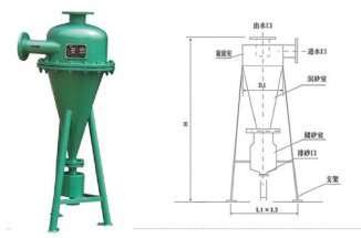3、 应用范围:河水、井水除砂,洗煤水、工业选矿、固液分离、液体除气以及非互溶液体的分离等可用于除砂、澄清、颗粒分离等多种需求。 除砂器可以多单元组合,以适应任何流量要求,压力损失为0.005~0.13 MPa。对于粒径大于50μm的颗粒其分离效果可达94~96%。除砂器也可以与盘式过滤单元组合在同一台设备中,将高浊度水处理后直接供给系统使用。在流量较大的应用场合中,可以采用口径更大的水力旋流器作为前期预处理,这样在不增加其他能源消耗的情况下系统总处理量、出水水质均可得到明显改善。水力旋流器在处理水中含有较重颗粒时具有明显优势,当悬浮颗粒密度较大时其分离粒径甚至可以达到2um。