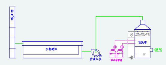 生物除臭是采用生物法通过专门培养在生物滤池内生物填料上的微生物膜对废臭气分子进行除臭的生物废气处理技术。当含有气、液、固三项混合的有毒、有害、有恶臭的废气经收集管道导入本系统后通过培养生长在生物填料上的高效微生物菌株形成的生物膜来净化和降解废气中的污染物。此生物膜一方面以废气中的污染物为养料,进行生长繁殖;另一方面将废气中的有毒、有害恶臭物质分解,降解成无毒无害的 CO2,H2O,H2SO4,HNO3等简单无机物,从而达到除臭的目的。