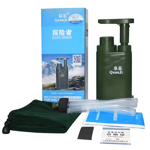 泉基多功能户外净水器采用纯天然硅藻土陶瓷滤芯,经1200℃高温烧结而成,滤芯可反复清洗,节能环保。