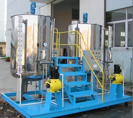 全自动加药设备在电力、石油、化工、冶金工业、环境工程、水处理等领域中常需要将某种液体连续自动地注入到另一种液体中成为一种混合液,或者使加入的药剂与液体中存在的某种组分发生化学反应,以达到预期的工艺要求。为达到最佳效果,在工况变化的情况下,对所加化学药剂量自动跟踪调节控制加药速度,因此在自动加药装置中我们采用了先进的自动控制方式来控制加药量。