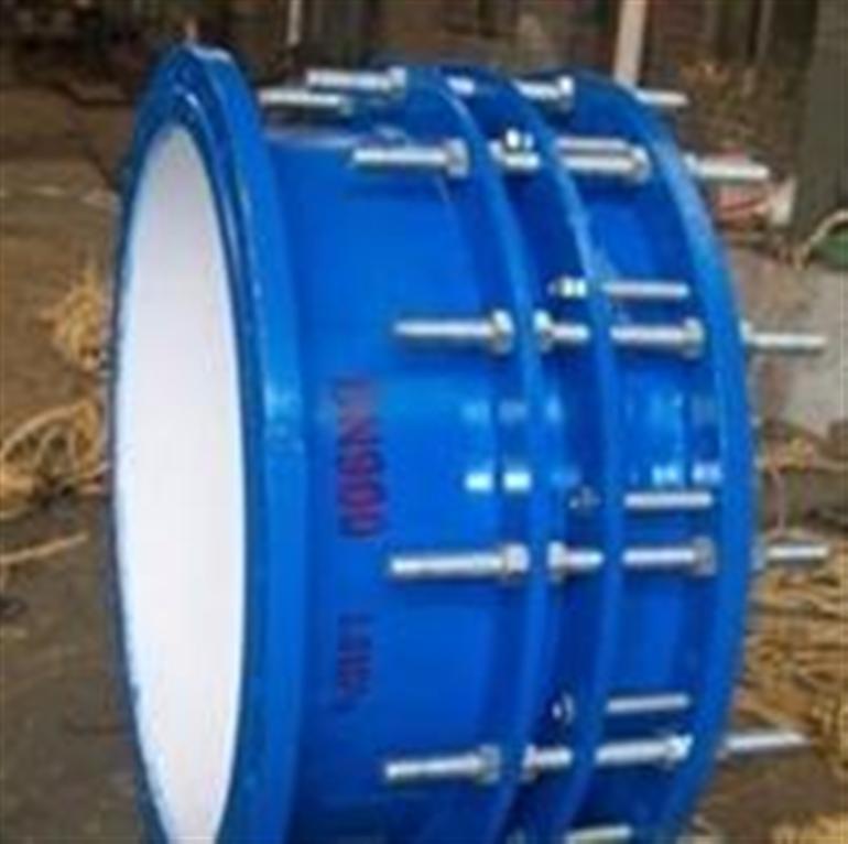 可拆式双法兰传力接头安装在管道后,根据所需要的伸缩距离进行限位,拧紧螺母,弹性密封圈在螺母压盖的作用下依靠相互斜度,紧压在管子外圈,起密封和连接作用,主要和管道阀们连接,不但起到管道补偿作用,更方便了阀门的维修及更换。