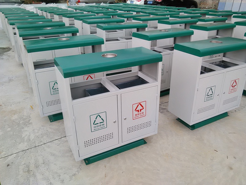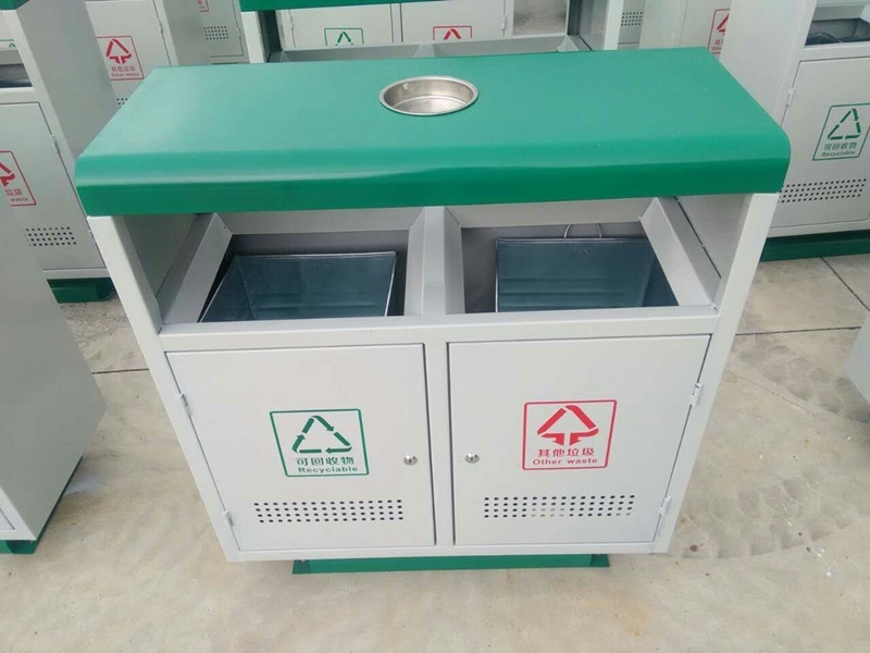 垃圾桶本身经喷砂处理去油去锈后,钢板表面再采用防腐防蛀处理,抗紫外线丙稀酸油漆多层喷涂。色泽亮丽美观,并具有防潮、防腐、防蛀、防锈、耐高温、易清理等特点;垃圾桶顶部设有不锈钢烟灰盅,更方便烟头的投放,有效的避免乱扔烟头带来的火灾隐患;桶身两侧有通气孔,能缓解细菌的滋生。本品采用地脚螺栓固定,请务必安装在水泥地上。适用于单位学校、城市街道、公园、风景区、小区、广场等各类公共场所。