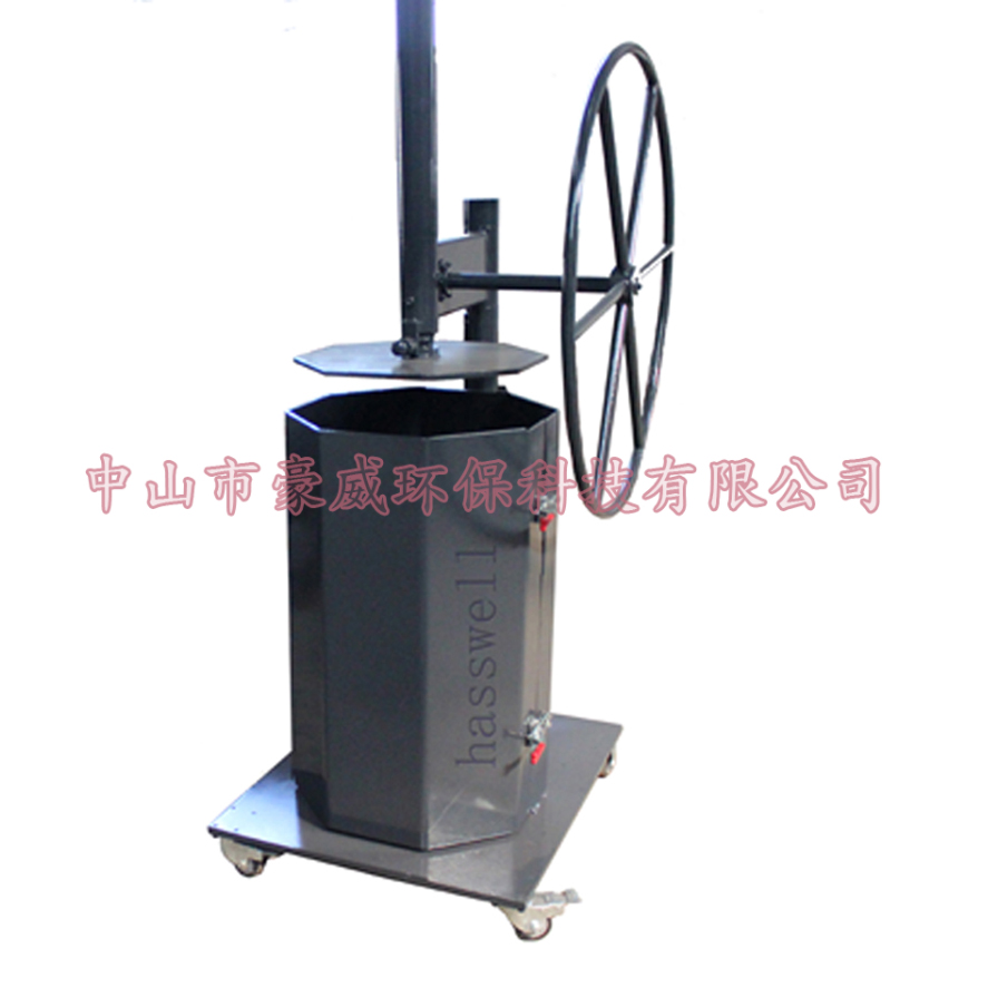 中山市豪威环保科技有限公司生产的手动压实机使用人力驱动,由于运用了杠杆原理设计,最大压缩力可达0.5吨,对松散物料压缩量一般达70%以上。不用外接电源、机械轻巧接凑,工作场地可以随机而定,适用性强,压实箱的体积可随使用用途而定。旋转的压力工作杆,在投放物料时可旋转90度,很好的避开投放物料的工作空间,上下设置压缩行程的控制机械机构,压缩行程防回弹限位机构,操作简单、合理、人性化。