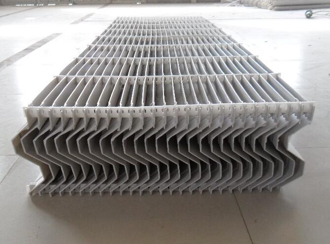 主要性能参数 (1) 除雾性能除雾性能可用除雾效率来表示。除雾效率指除雾器在单位时间内捕集到的液滴质量与进入除雾器液滴质量的比值。除雾效率是考核除雾器性能的关键指标。影响除雾效率的因素很多,主要包括:烟气流速、通过除雾器断面气流分布的均匀性、叶片结构、叶片之间的距离及除雾器布置形式等。对于脱硫工程,目前用于衡量除雾性能的参数主要是除雾后烟气中的雾滴含量。一般要求,通过除雾器后雾滴含量一个冲洗周期内的平均值小于75mg/Nm3。该处的雾滴是指雾滴粒径大于15μm的雾滴,烟气为标准干烟气。其取样距离为离除雾器距离1-2m的范围内。目前国内尚无脱硫系统除雾器性能测试标准, 连州电厂根据AE公司提供的资料采用以下方法:I在除雾器出口烟道上用烟气采样仪采集烟气,记录采样时间,同步测量烟气流速、标准干烟气量、烟温、烟气含湿量、烟气含氧量等。II 在除雾器出口,用带加热采样管和尘分离器的标准除尘设备对气体进行等速采样。采样体积为5m3,采样后用超纯水对采样管和采样设备进行反复冲洗,洗液倒入250ml容量瓶中定容。混匀后用EDTA法测定Mg2+含量。III 用稀释的高氯酸和超纯水对采样后的微纤维过滤器进行反复冲洗,洗液用慢速厚型定性层析滤纸过滤到250ml容量瓶中,定容。混匀后用EDTA法测定Mg2+含量。另取1个新的微纤维过滤器作空白样。 IV 用烟尘采样仪测定吸收塔进口烟尘浓度,然后计算除雾器出口液滴质量浓度。 (2)压力降压力降指烟气通过除雾器通道时所产生的压力损失,系统压力降越大,能耗就越高。除雾系统压降的大小主要与烟气流速、叶片结构、叶片间距及烟气带水负荷等因素有关。当除雾器叶片上结垢严重时系统压力降会明显提高,所以通过监测压力降的变化有助把握系统的状行状态,及时发现问题,并进行处理。湿法脱硫系统除雾器的压力降一般要求小于200Pa。 2 除雾器的特性参数 (1) 除雾器临界分离粒径dcr 波形板除雾器利用液滴的惯性力进行分离,在一定的气流流速下,粒径大的液滴惯性力大,易于分离,当液滴粒径小到一定程度时,除雾器对液滴失去了分离能力。除雾器临界分离粒径是指除雾器在一定气流流速下能被完全分离的最小液滴粒径。除雾器临界分离粒径越小,表示除雾器除雾能力越强。应用于世法脱硫系统屋脊式除雾器,其除雾器临界分离粒径在20-30μm。