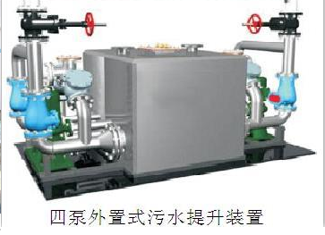 全自动地下室污水排放专用设备主要由集(污)水箱、提升泵、辅助排污泵、控制柜以及相应的过滤器、管道、阀门等组成。控制柜编程控制,全自动运行,无须人员值守,提升泵1、2互为备用、轮值运行。当设备出现故障,报警系统将自动启动,报警指示灯闪烁,并发声报警,提醒值班人员。另外,控制柜上还有手动操作系统,可在现场手动应急启停水泵。设备除双泵配置外,还有单泵和四泵配置。