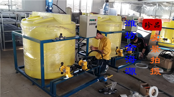 全自动加药装置能自动按水处理技术要求自动准确,定量投加水处理药剂,大大减少现场施工工作量,避免了中间环节的差错,有效地保证工期和工程质量,减少用户的麻烦和损失。在电力,石油,化工,冶金工业,环境工程,水处理,化工,印染等领域中常需要将某种液体连续自动地注入到另一种液体中成为一种混合液,或者使加入的药剂与液体中存在的某种组分发生化学反应,以达到预期的工艺要求。生产过程中是连续的,这种投加工作必须同样是连续的,需要一种既能配置溶液,又能定量定时投加药剂的全自动加药装置设备。