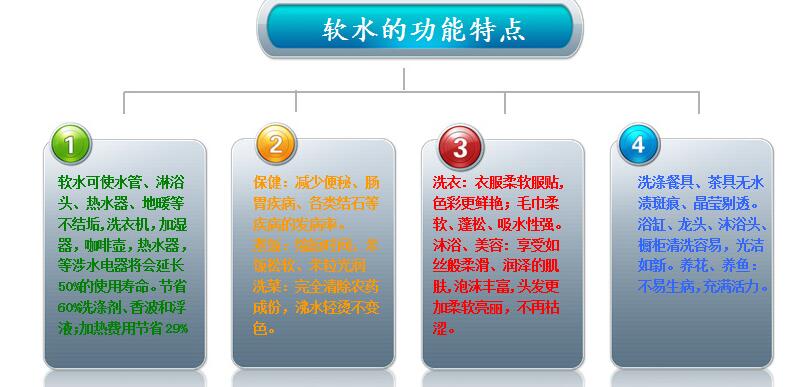可广泛应用于蒸汽锅炉、热水锅炉、交换器、蒸发冷凝器、空调、直燃机等系统的补给水的软化。还可用于宾馆、饭店、写字楼、公寓、家居等生活用水的处理及食品、饮料、酿酒、洗衣、印染、化工、医药等行业的软化水处理。