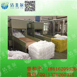 初效过滤棉是经开松、混合、梳理均匀成网再经热熔、冷却成型,成片或卷装。然后经后整理(如上胶,与布(网)贴合等),最后烘干定型制成的空气过滤棉,也叫热风棉。