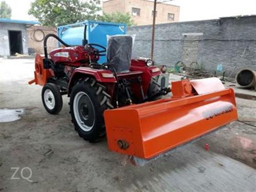 扫地刷是清扫机的主要工作机构。它是由刷、刷架、悬杆和驱动机构组成。扫地刷还分主刷和副刷。主刷是圆柱型的,是主要的清扫装置,它把垃圾清扫到垃圾传送装置上去,再送到垃圾箱中去。刷毛安装在空心圆柱体上顾又称滚刷。副刷是清扫道路边缘的,并将垃圾扫到主刷的清扫范围内,这样就扩大了整体的清扫面积。它安装在机体的两侧,可以左右延伸,还可以上下调节,称侧刷。