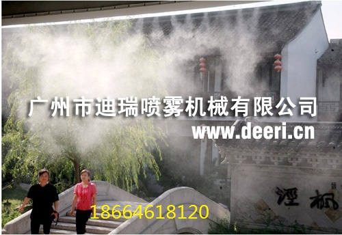 喷雾降温系统以及细微雾化状态喷出,能大量吸收空气中热量,水雾吸收空气中热量后即产生汽化,从而达到快速降温的目的.炎热夏季,当温达到30度以上时,雾化降温能在几分钟内降低温度5-8度左右,同时将空气中氧气中氧的正离子中和,氧的负离子最多可提高几千倍,使空气纯净新鲜,增强机体免疫力,有益身心健康.、