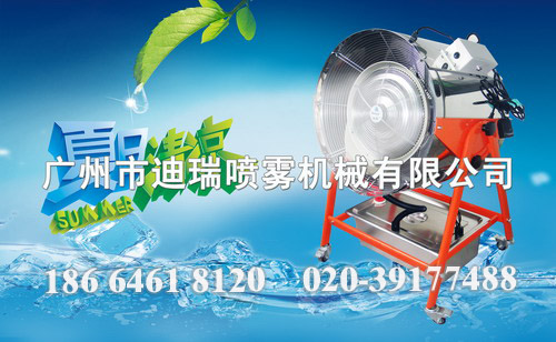 喷雾风机的特点是雾量大,加湿降温快,雾滴通过气流由风叶吹出并汽化,在水的汽化过程中吸收热量,降低温度、提高空气相对湿度。因此水雾不会落于地面,更无水滴现象、雾化细、射程远。