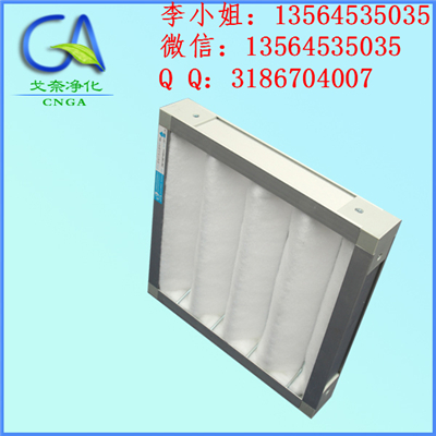 2) 过滤网加强筋采用的V型骨架使滤网间保持坚隔,制成V字型,给予气流提供更大过滤面积,更增强了使用坚固性,
