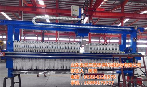 板框压滤机有手动压紧、机械压紧和液压压紧三种形式。手动压紧是螺旋千斤顶推动压紧板压紧;机械压紧是电动机配H型减速箱,经机架传动部件推动压紧板压紧;液压压紧是有液压站经机架上的液压缸部件推动压紧板压紧