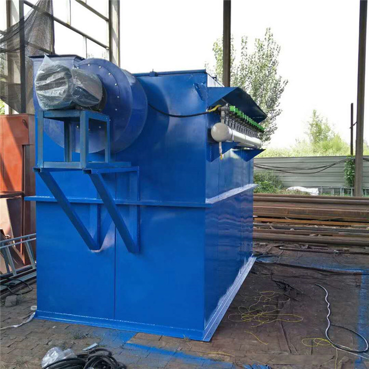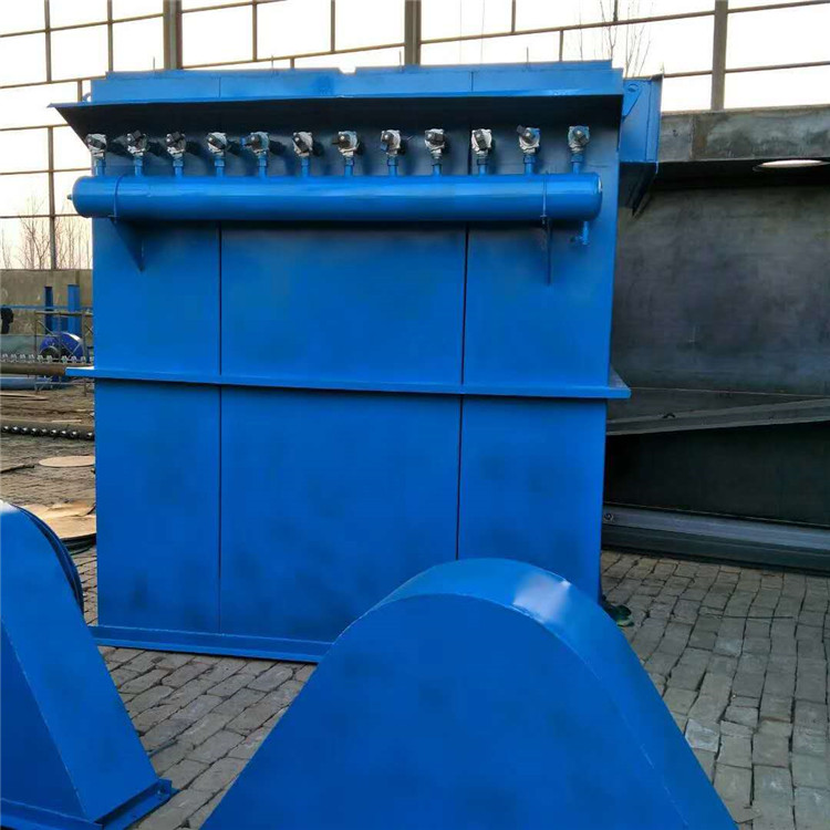 低压脉冲袋式除尘器的气体净化方式为外滤式,含尘气体由导流管进入各单元过滤室,由于设计中滤袋底离进风口上口垂直距离有足够、合理的气流通过适当导流和自然流向分布,达到整个过滤室内空气分布均匀,含尘气体中的颗粒粉尘通过自然沉降分离后直接落入灰斗,其余粉尘在导流系统的引导下,随气流进入中箱体过滤区,吸附在滤袋外表面。过滤后的洁净气体透过滤袋经上箱体、排风管排出。