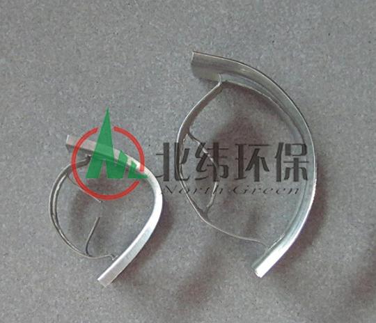 金属矩鞍环的形状介于环形与鞍形之间,因而具有两者之优点。结构上金属矩鞍环在鞍形基础上增强了环形筋,避免了重叠,保证了一定的强度与刚性,冲出了几个小爪,增强了所液搅动,强化了传质,从而产生了独特的性能,是现今最优秀的散堆填料之一。 金属环矩鞍填料是美国Norton公司开发的,它的形状介于环形与鞍形之间,因而兼有两者之优点。结构上金属矩鞍环填料在鞍形基础上增加了环形筋,避免了重迭,保证了一定的强度与刚性,冲出了几个小爪,增加了气液搅动,强化了传质,从而产生了独特的性能。