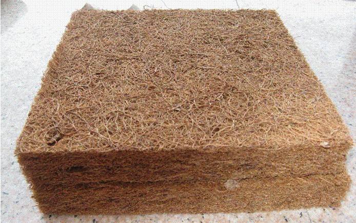 采用椰子长纤维,经卷曲,喷胶轧压成型,不易脱落;