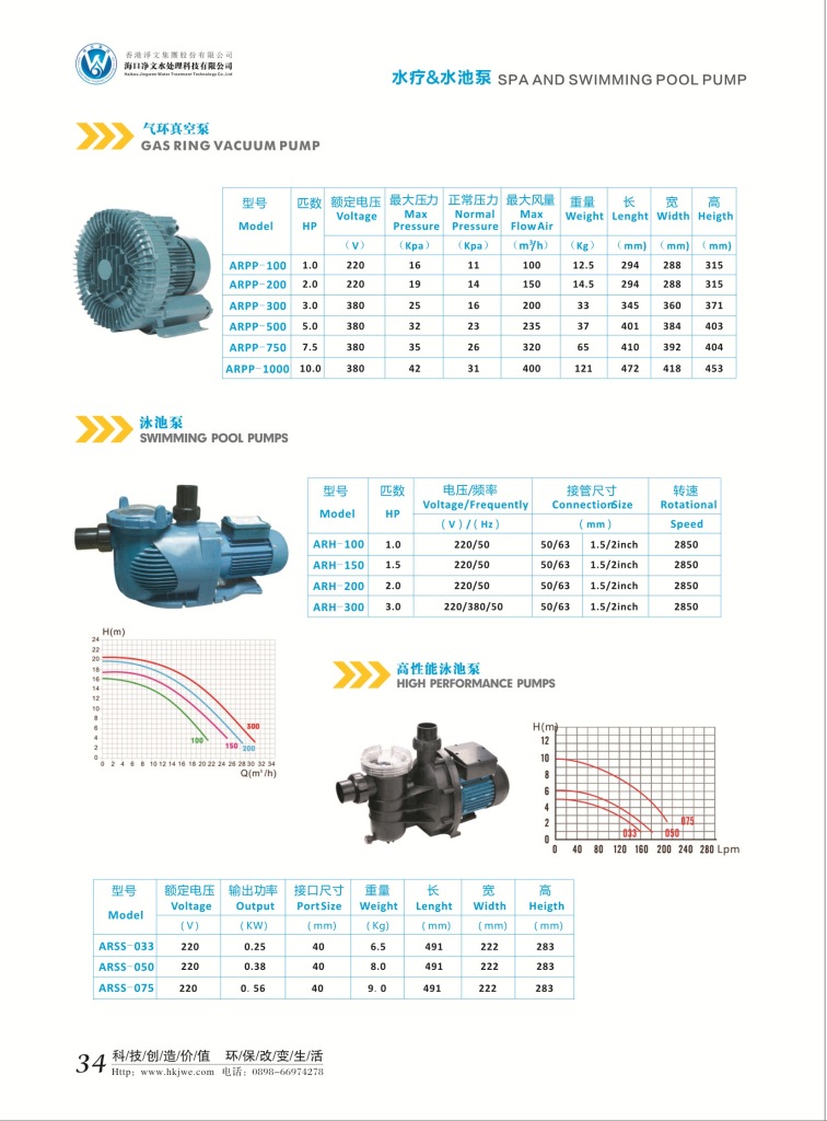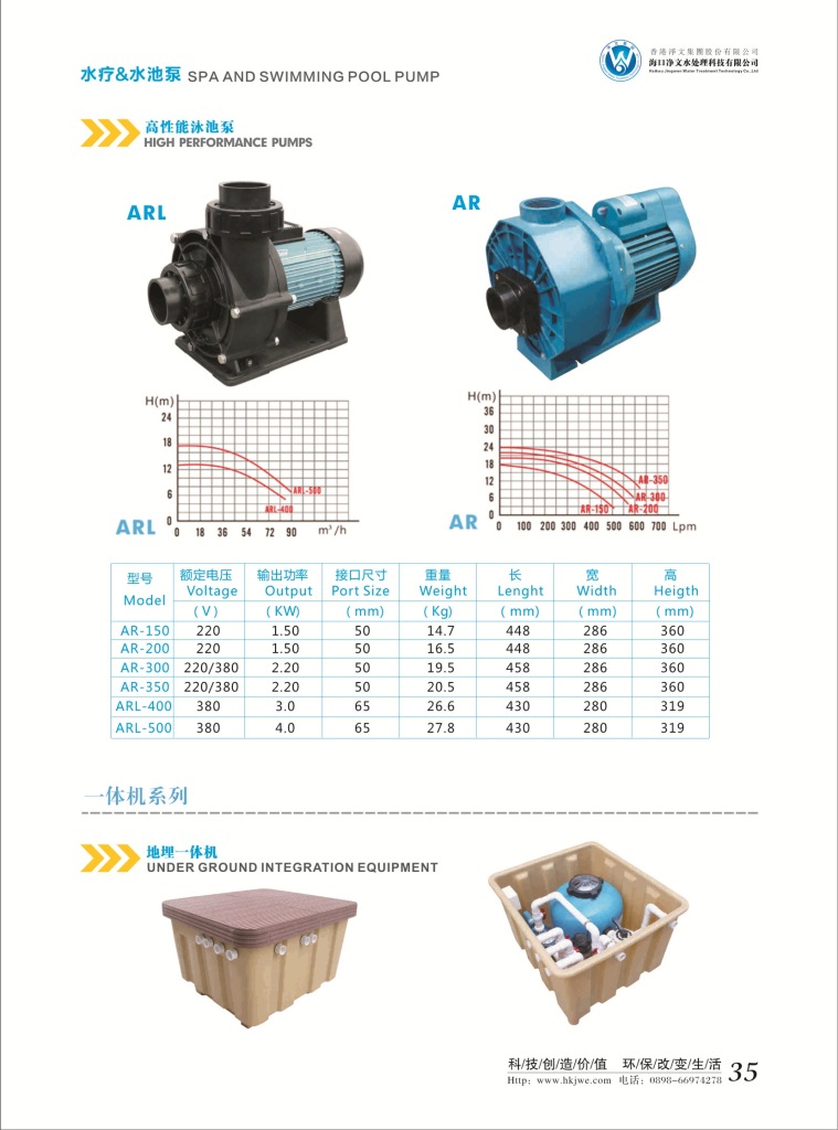 应用于游泳池过滤系统中水循环;泵送清水或带有悬浮颗粒的轻度污水;